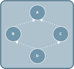 Dans le schéma suivant, l'objet A utilise l'objet B et C. A leur tour, les objets B et C utilisent tous deux l'objet D.