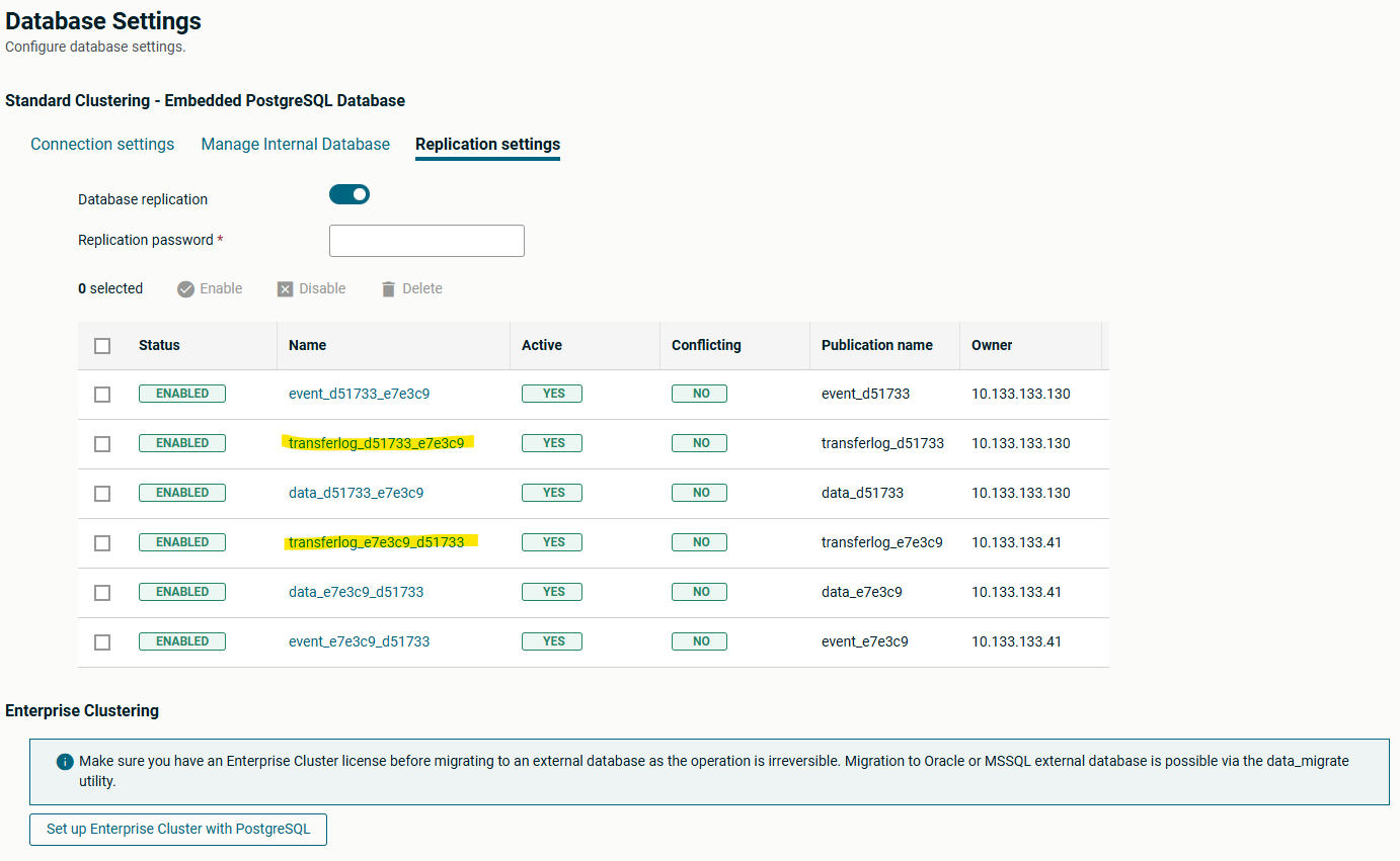 Standard cluster with PostgreSQL - fix File Tracking replication issue