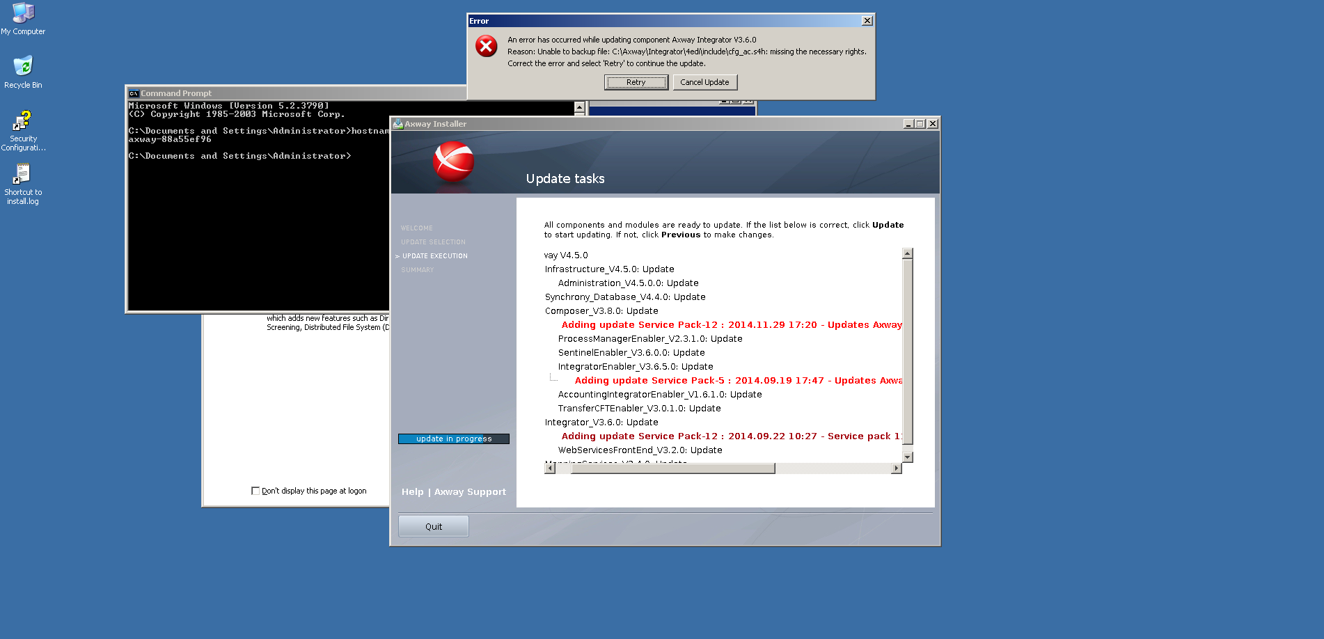 * an error has occurred while updating component Axway Integrator v3.6.0