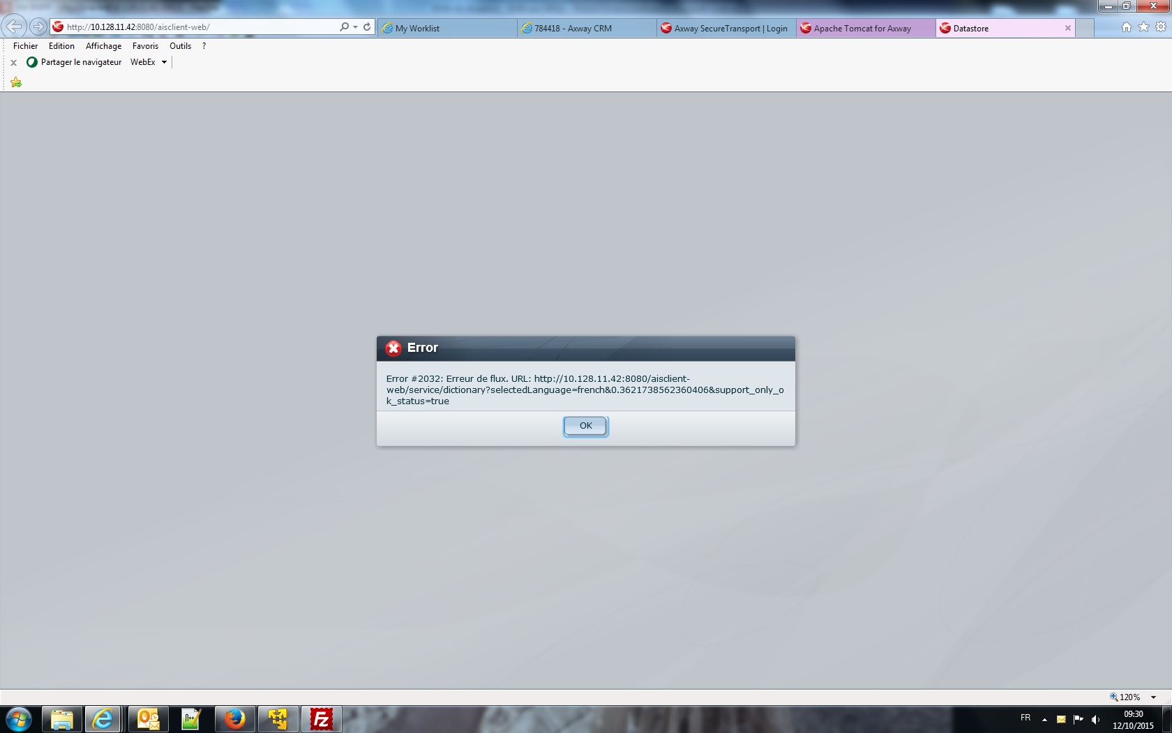 After a configure with AIS product , we can't connect afterwards to aisclient-web (cf screen shot) :