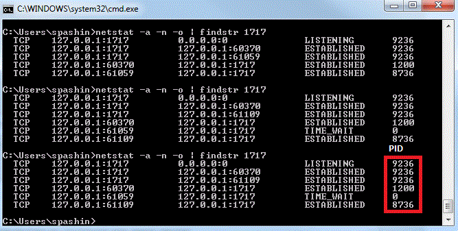 -This would provide you the PID (Process ID) of the instance/application using the port.