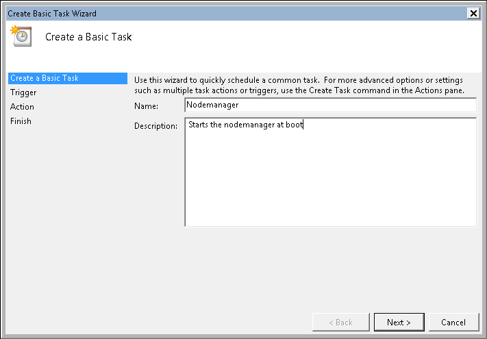 2. Launch the Create a Basic Task wizard and give it a name e.g. Nodemanager