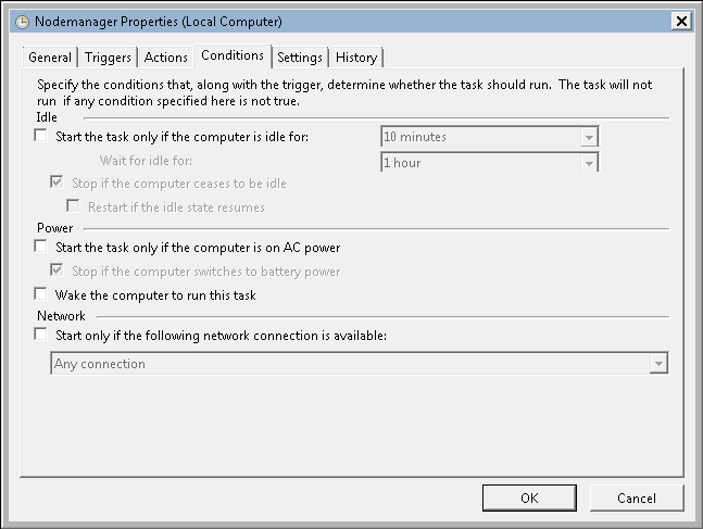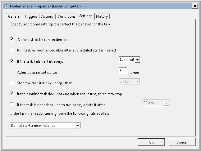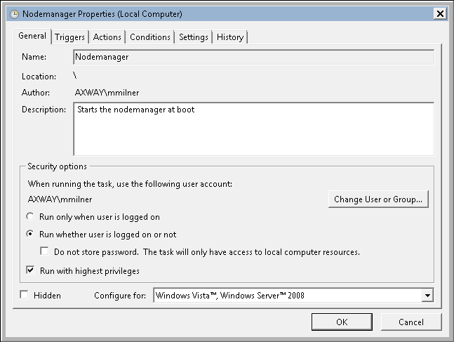 The following steps show how to setup a nodemanager and an instance in the task scheduler to be activated at system boot time.