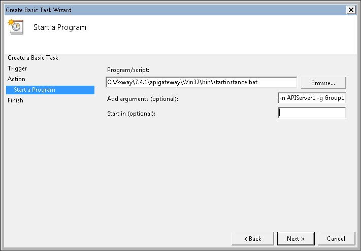 Using the Windows Task Scheduler to start API Gateway processes at boot