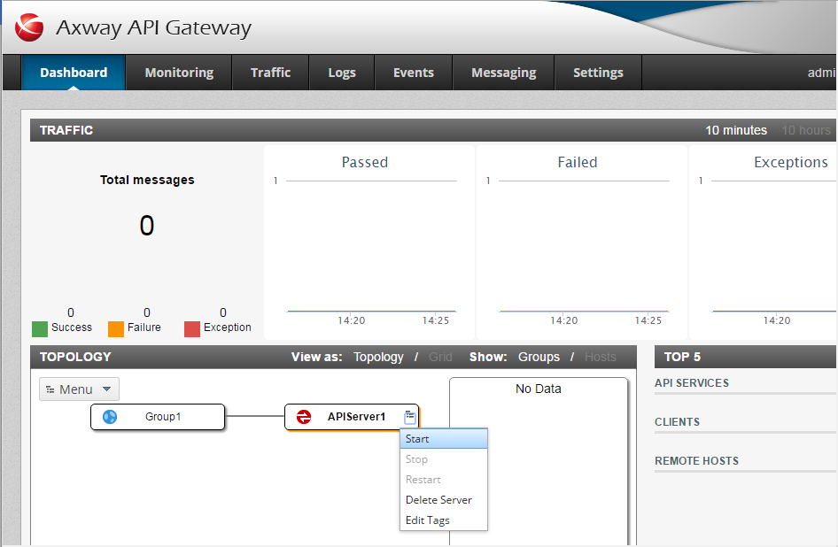 This works fine except for a known issue in that API Gateway Manager (8090) is unable to start/stop the instances via the browser (i.e. in the topology from the drop down on the instance object)