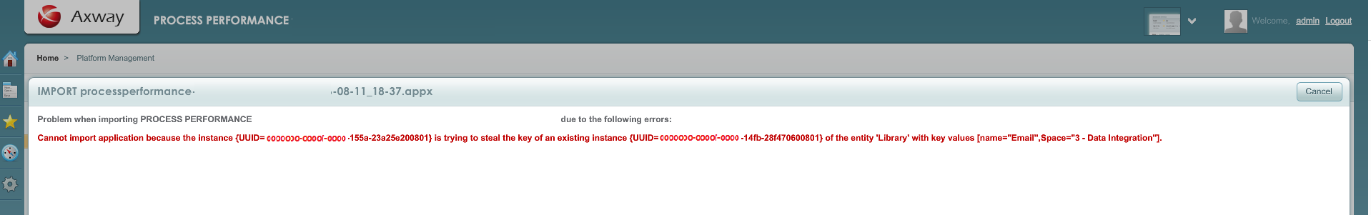 If you meet a problem when you import a new Version of an application, in particular if you have an exception message about DuplicateId, Value [...] is not unique or key stolen, It means you make a modification on an object existing in the version to update and in the version used to update.