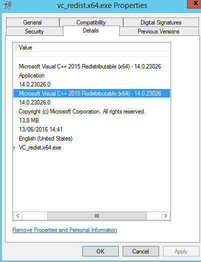 * install VC 2015 64 bits (Microsoft Visual C++ Redistributable (x64) - vc_redist.x64.exe)