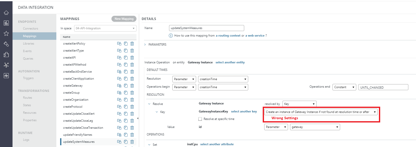 in the option GatewayInstanceKey, the option selected should be "error if instance of gateway instance not found at resolution time". If you have "create an instance of gateway instance not found at resolution time or after", it's the wrong Setting.