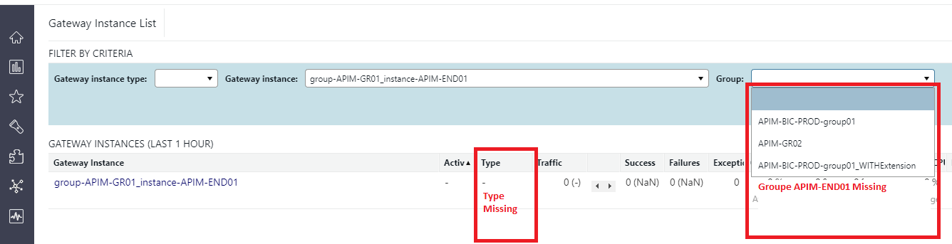 The error occurs when you see a Gateway created without gateway Type & group. This problem occurs, if the 1st message received from the FileBeat is a "system" event. In this case, the creation of the instance gateway isn't following the right process. Instead of creating all needed element like group et setting the relation, the instance is created without any link to relative dependence (global, type, group).