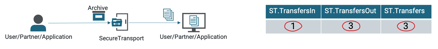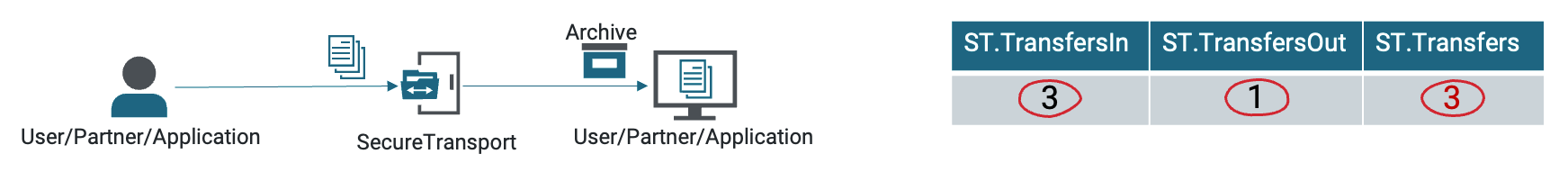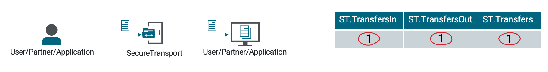 • When a non-tagged file leaves SecureTransport, the ST.Transfers is increased.